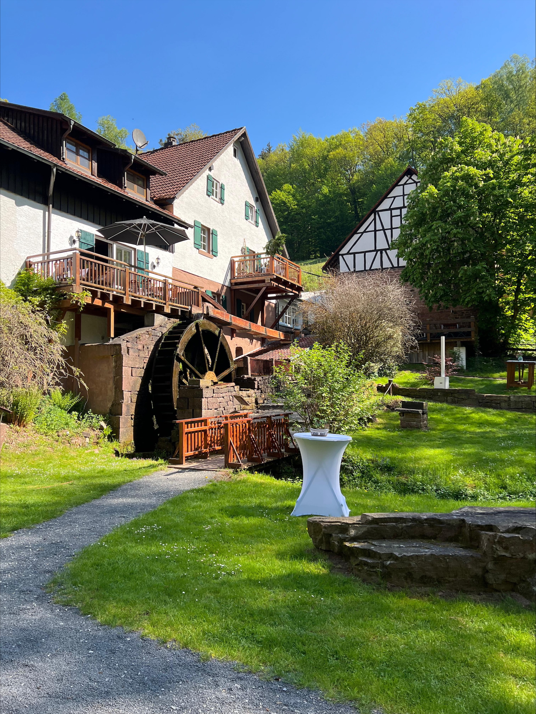 LocationplanEin traumhafter Empfang bei den Aperitifzelten an den Teichen verzaubert die Gäste bereits beim Ankommen von dem Charme der Heidersbacher Mühle. Während die Aufregung langsam steigt, begeben sich die Gäste zur Mühlenwiese, die festlich für die freie Trauungszeremonie hergerichtet wurde. Unter den dichten Baumkronen des Odenwalds entstehen hier die einzigartigen Momente voller Gänsehaut und Liebe. Beim Sektempfang im Anschluss stoßen Brautpaar und Gäste gemeinsam auf das große Glück an, während zum Abend das feierlichen Dinner in der großen, stimmungsvoll dekorierten Festscheune im oberen Bereich des Anwesens wartet. Und danach kann nach Herzenslust bis in die Morgenstunden getanzt und gefeiert werden.
